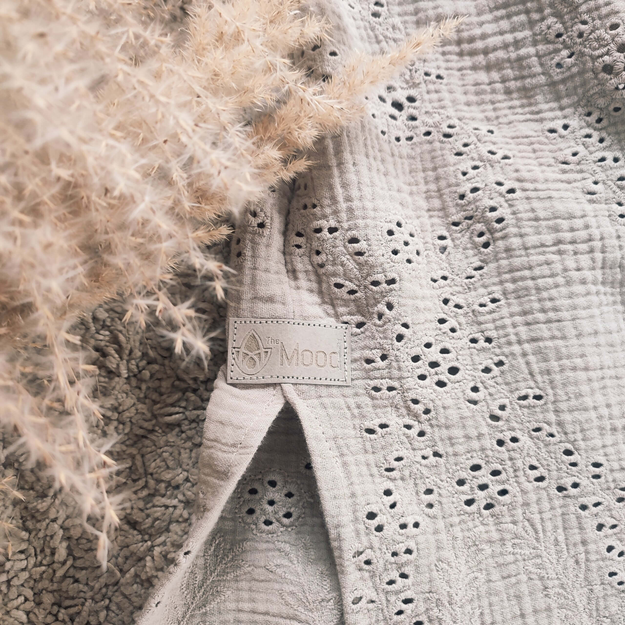 Mušelín, neboli dvojitá gázovina je 100 % bavlněný materiál speciálně tkaný tak, že výsledkem je dokonalá prodyšnost a zároveň neprosvítavost, jemnost a něha. Návyková lehkost bytí.