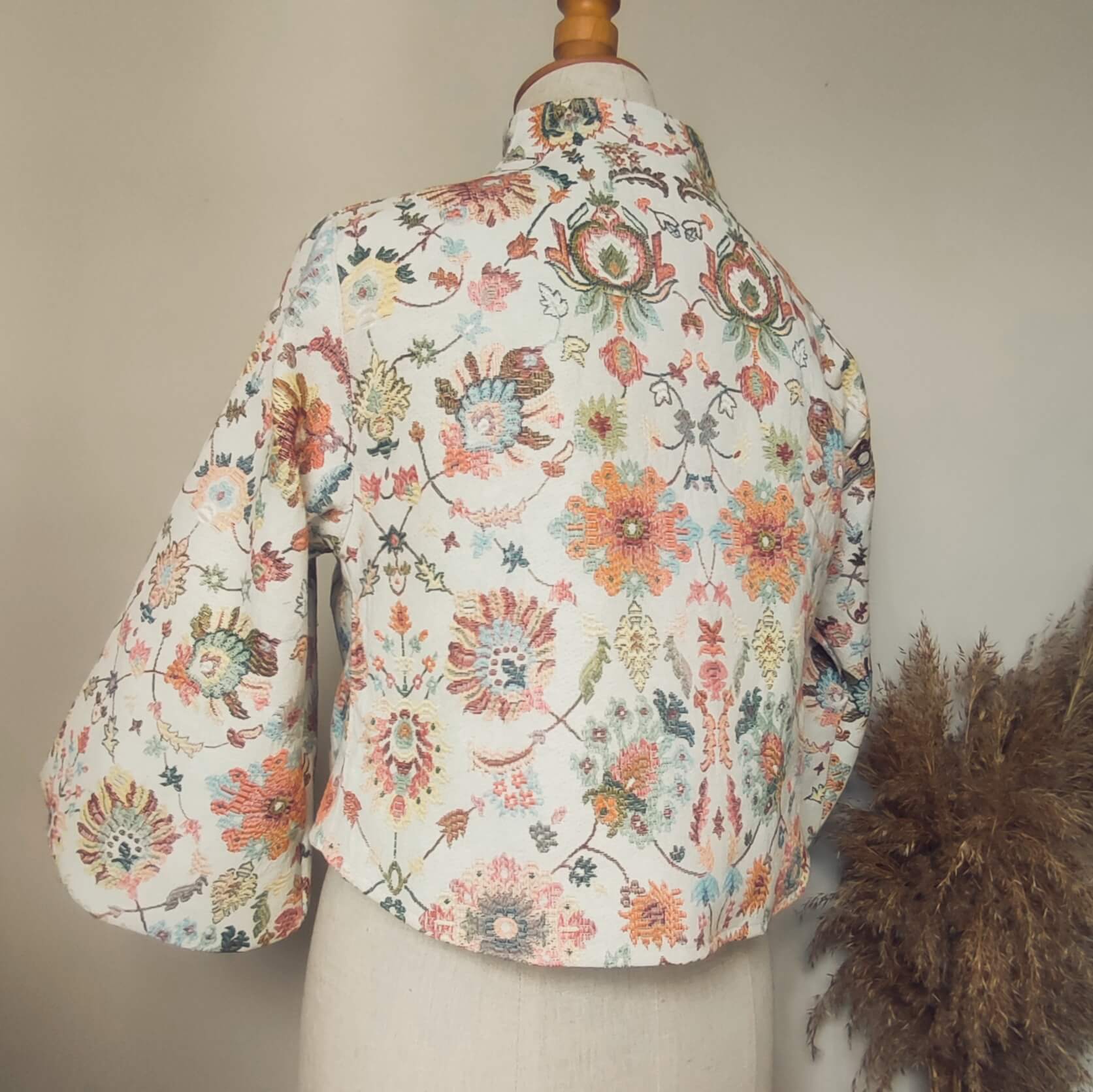 Luxusní gobelínové sáčko s výraznými indickými květy je oslavou jara, jedinečnosti a radosti. Navrženo tak aby tě rozzářilo nejen při nevšedních příležitostech.
