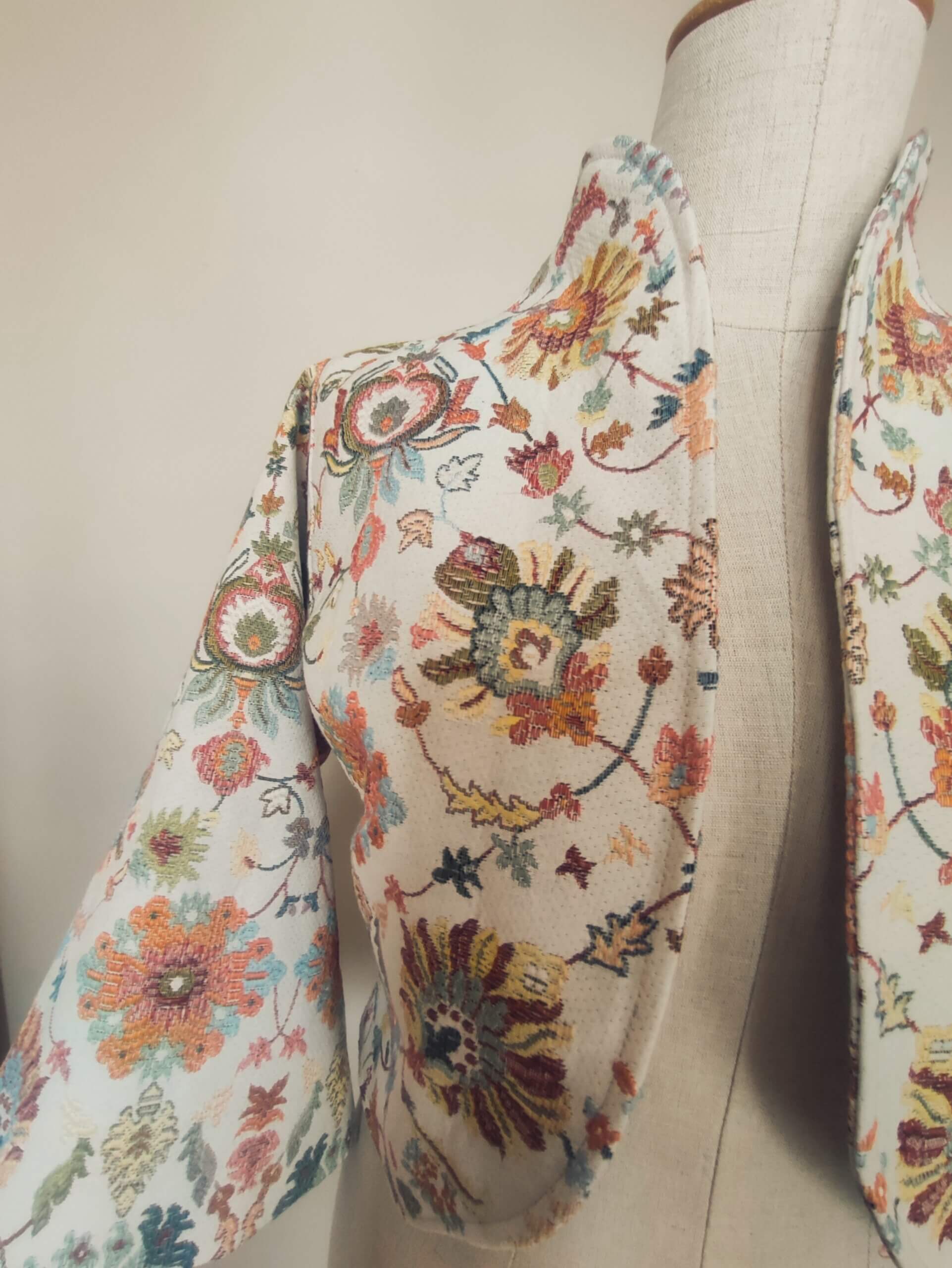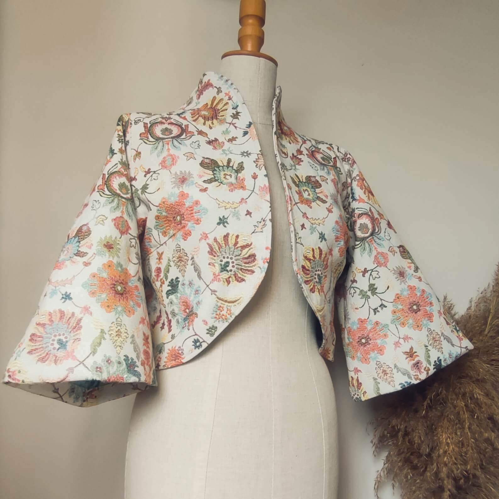 Elegantní límeček, saténová podšívka a kónické tříčtvrteční rukávy jej přímo předurčují k vyjímečným kombinacím jak se šaty, tak s širokými kalhotami nebo úzkými sukněmi.