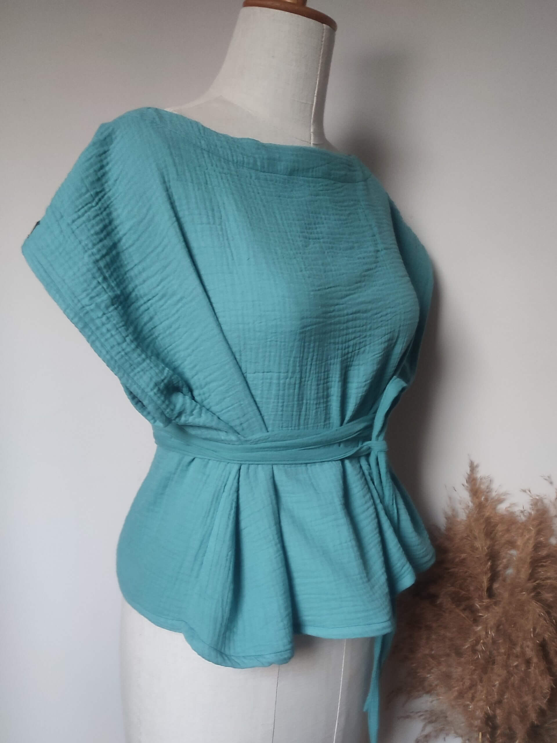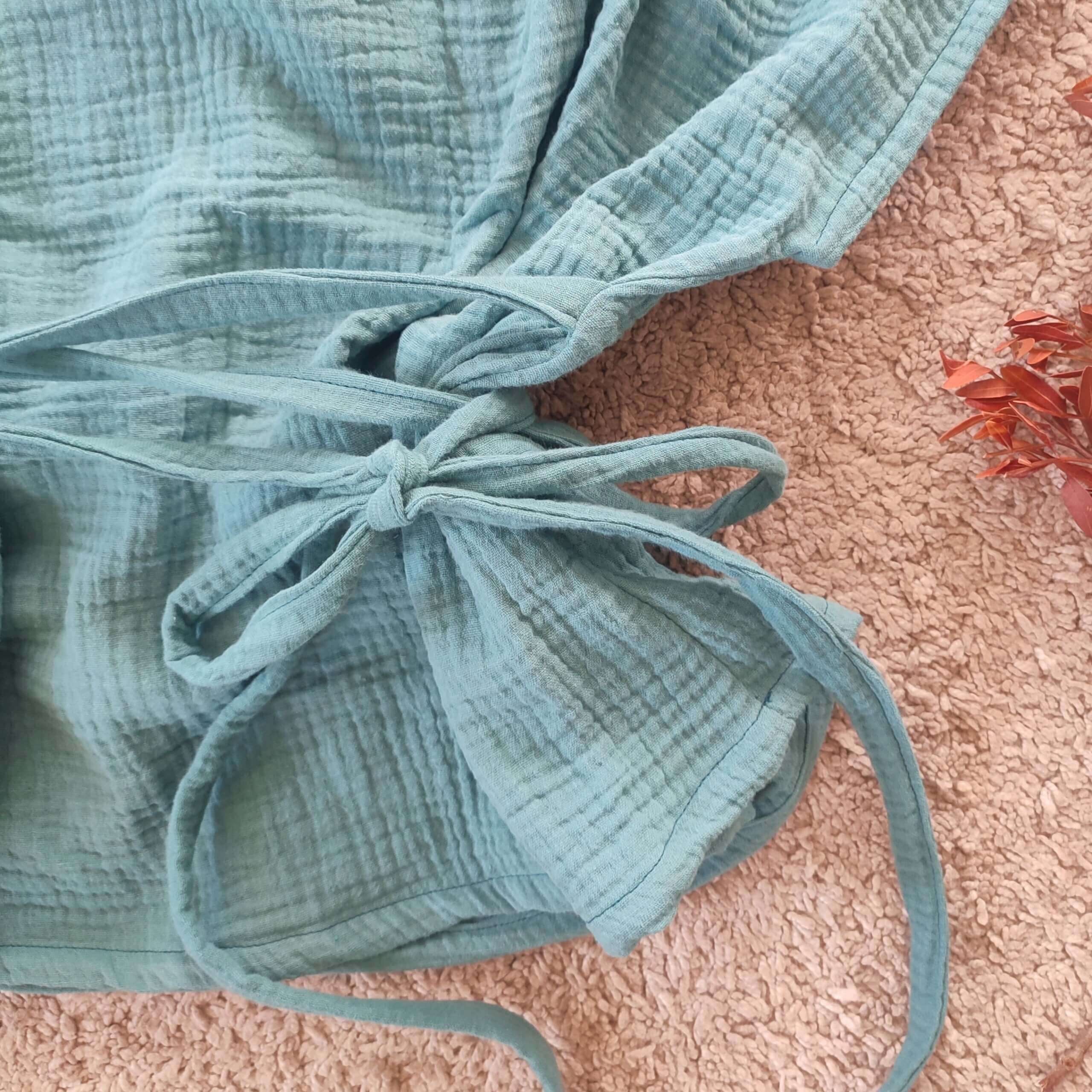 Mušelín který používám je 100 % biobavlněný materiál v nejvyšsí GOTS certifikaci speciálně tkaný tak, že výsledkem je dokonalá lehkost, jemná struktura a prodyšnost. Užijte si v něm nejen léto!