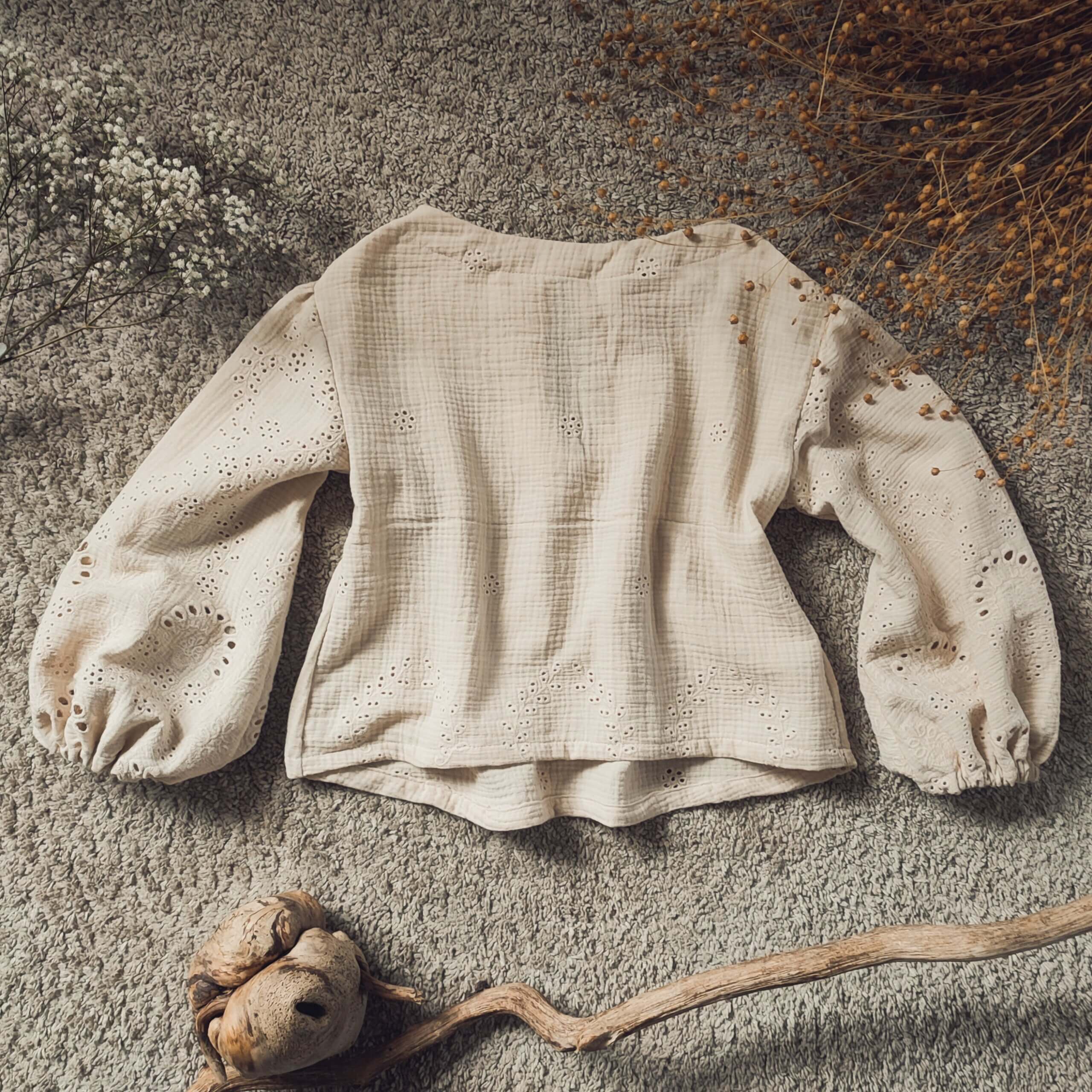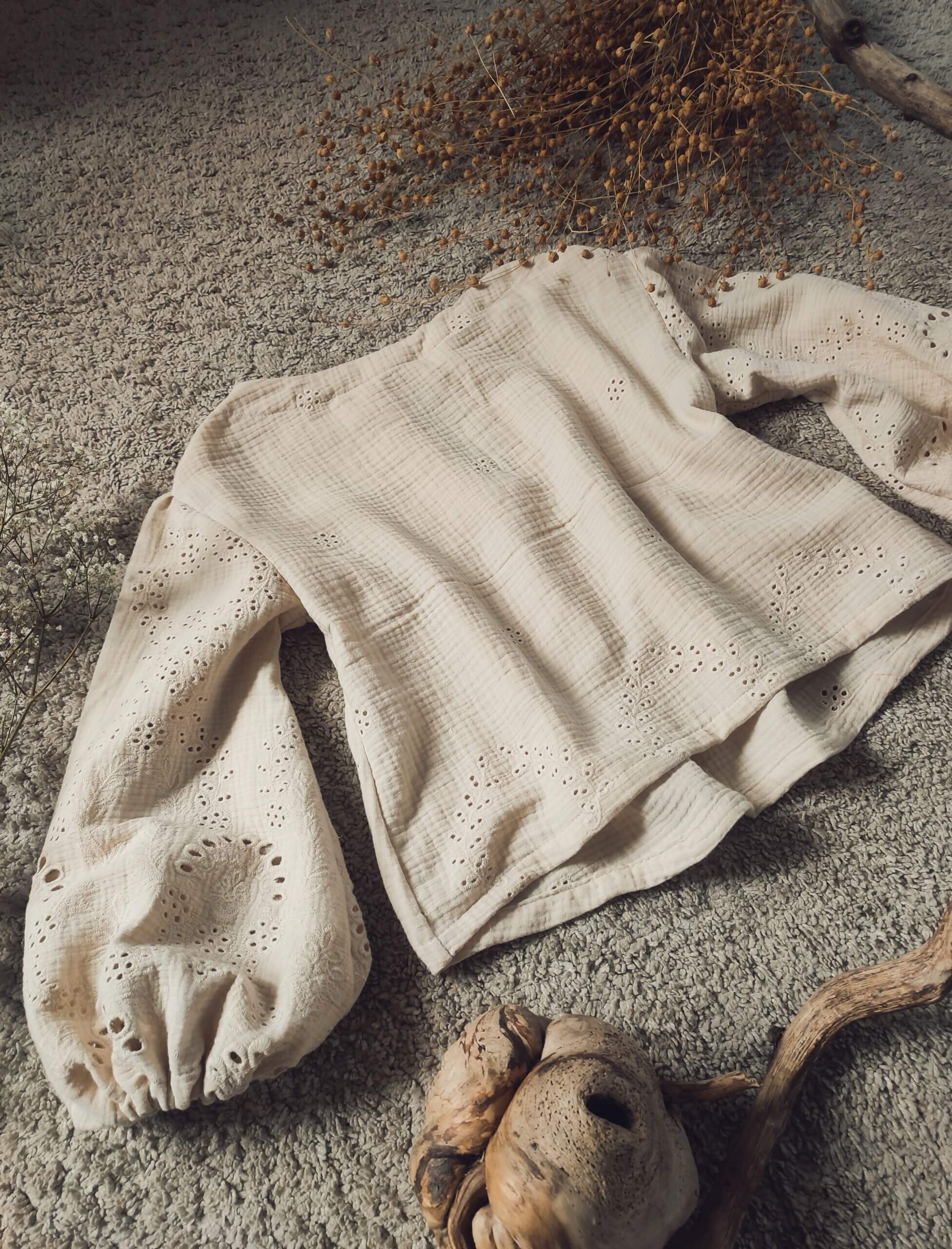 Nech se provívat, něhou zahalená, v halence z vyšívaného mušelínu v něžném krémovém odstínu.